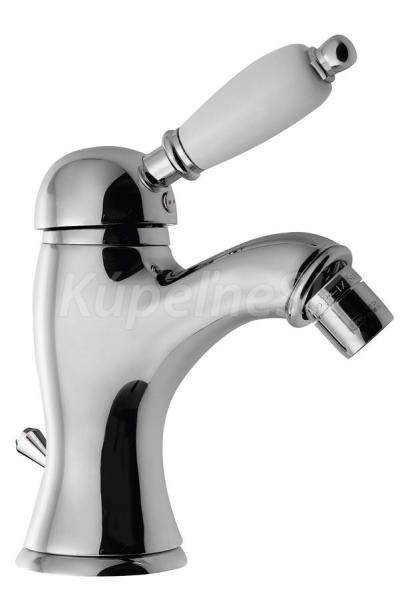 Sapho KIRKÉ WHITE stojánkova bidetová batéria s výpusťou, biela páčka, chróm