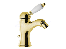 >>  Batérie vodovodné  >>  Bidetové batérie  >>  Sapho KIRKÉ WHITE stojánkova bidetová batéria s výpusťou, biela páčka, zlato