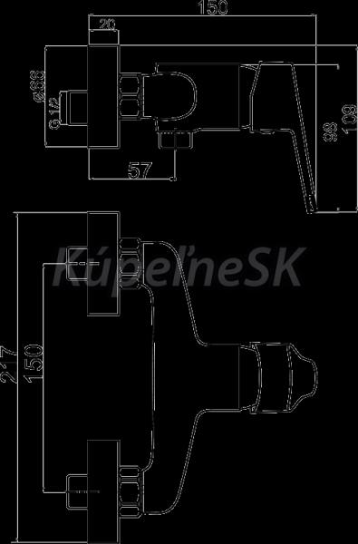 Kvalitná a odolná, keramická kartuš 35 mm <b>s 5 ročnou zárukou</b>. Prvotriedne chrómové prevedenie. Sprchová nástenná batéria so spodným vývodom s rozostupom 150 mm. Kvalitní a odolná keramická kartuše 35 mm <b>s prodlouženou zárukou 5 let</b>. Prvotřídní chromové provedení. Sprchová nástěnná baterie se spodním vývodem s roztečí 150 mm.