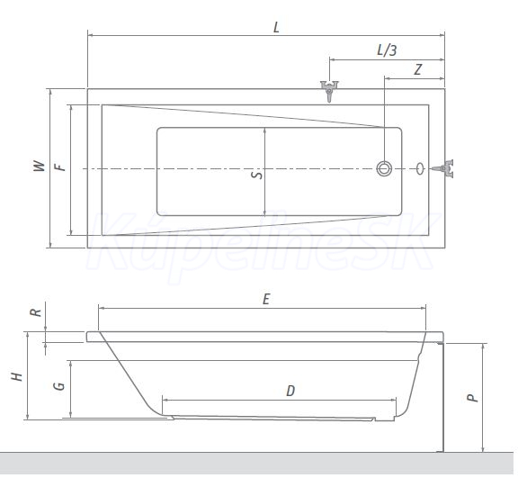 Obdĺžniková akrylátová vaňa s extra tenkým lemom pre ešte luxusnejší kúpeľ.