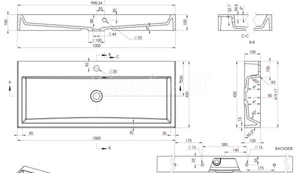 ZnačkaSAPHO SériaORINOKO 3D modelÁNO Rozmer100x10x42 cm Šírka1000. mm Hĺbka420. mm FarbaB