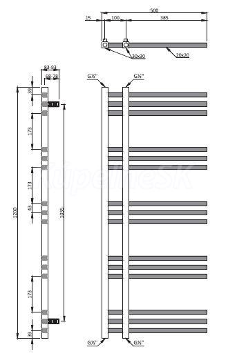 Kombinované pripojenie umožňuje ohrievať teleso ako centrálnym systémom vykurovania, tak využiť pre samostatný ohrev elektrickú vykurovaciu tyč mimo vykurovacej sezóny. Vykurovaciu tyč odporúčame s rovnakým alebo podobným výkonom podľa špecifikácie daného vykurovacieho telesa.