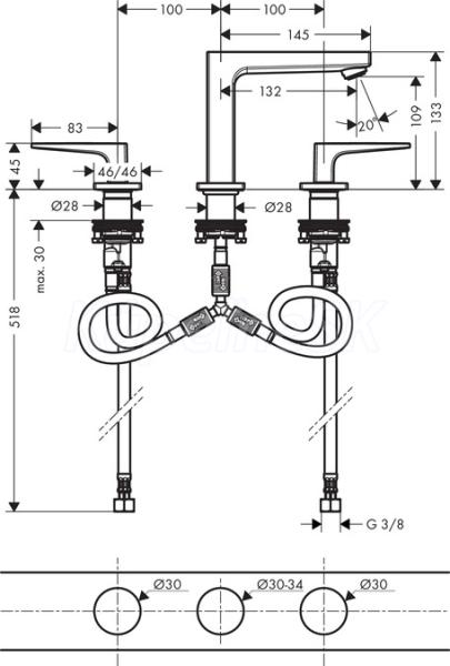 Hansgrohe 74514000 METROPOL Umývadlová 3-otvorová batéria s výpusťou, chróm