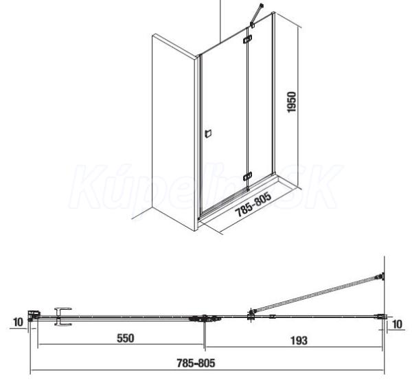 Jika PURE sprchové dvere do niky s pevným dielom 80x195cm Perla,ChrLesk,SkloČíre,Pravé Jika SHOWER DOOR 80 RIGHT 8 MM PURE