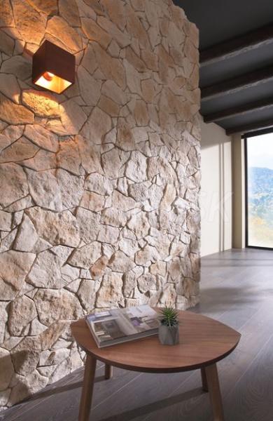NANGA obklad má jedinečný vzhľad ako kameň je inšpirovaný alpskou krajinou. V interiéri vytvára neopakovateľnú atmosféru. Vďaka obkladu NANGA môžeme získať individuálny vzor na stene. Obklad dobre vynikne spoločne s nábytkom so surového a tmavého dreva.