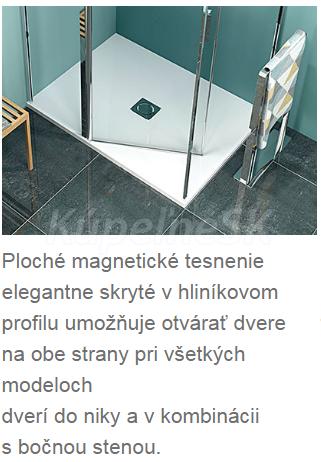 Magnetické tesnenie je skryté v hliníkových profiloch, ktoré dodávajú zástenám luxusný vzhľad