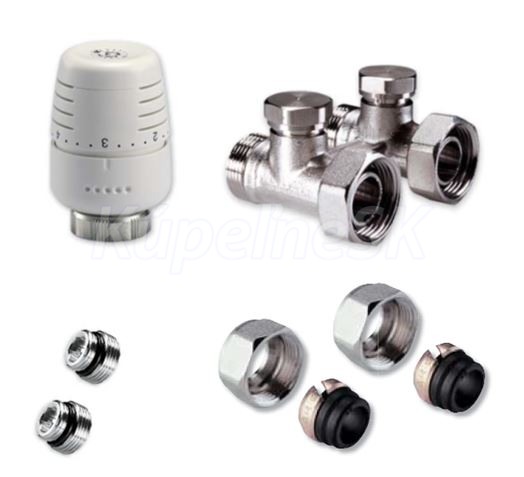 SADA sa skladá z vekoluxivar armatúry priamej, regulačného a uzatvárateľného 3/4” EUROKÓNUS pripojenia na medené alebo plastohliníkové potrubie, adaptéra AVK 01 3/4“ EK x 1/2“, zverného šróbenia TR (meď) alebo TA (Alpex), termostatickej kvapalinovej hlavice IVAR.T 5000, určené pre telesá so závitom M 30 x 1,5 pri ventile vložky.
