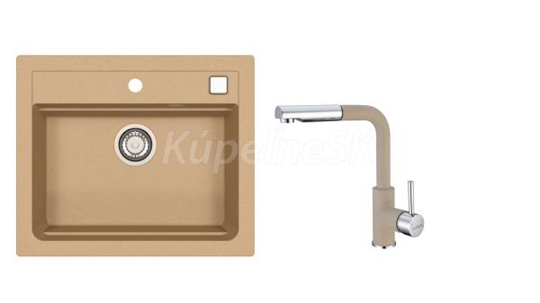 Alveus ATROX 30 SET kuchynský granit. drez so sifón. 59x50 + batéria SIROS - Beige/Chróm