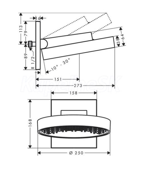 - rameno sprchy vertikálne nastaviteľné o 10-30°