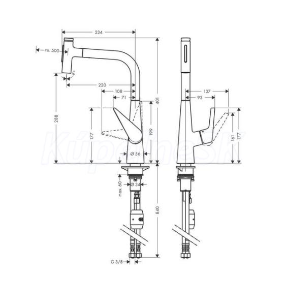 >>  Batérie vodovodné  >>  Drezové-Kuchynské batérie  >>  Hansgrohe 72823000 Talis Select M51 kuchynská páková batéria s vyťah. sprškou, chróm