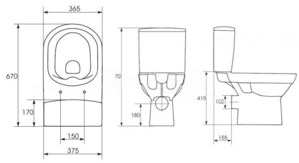 >>  WC-Bidety-dosky-Pisoár  >>  WC kombi  >>  Cersanit CITY NEW WC-kombi CleanOn vodor.odp,prív. vody zo spod+sed.slim,DP,SC,EO K35-038