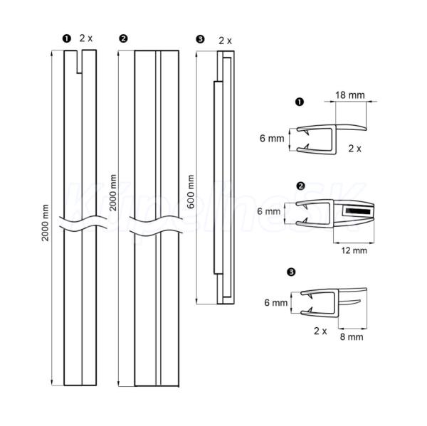 Sada tesnení pre CK10111Zx - CK10511Zx, tesnení medzi dvere a fixné sklo - 2 ks (levá a pravá varianta), mag. lišta na sklo 45° 1 ks, spodní stierací lišta 2 ks (levá i pravá varianta) 60cm.