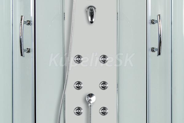 Masážny sprchový box ARTTEC CALYPSO MODEL 4 chinchila, vlastnej výroby, s posuvnými dverami štvrťkruhový sa vyznačuje vysokou kvalitou a jednoduchým dizajnom. Ponúka všetko, čo potrebujete k pohodlnému každodennému sprchovanie: batériu s ručnou sprchou a držiakom, poličku a vysokú vaničku. Pre väčšie relaxáciu prináša aj 6ks masážnych trysiek.