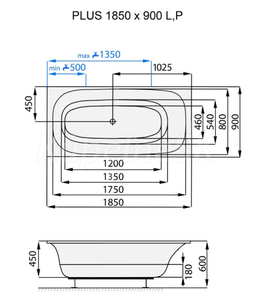 Ten, kto pozorne vníma kontúry vane, bude súhlasiť, že model PLUS je tvarovo riešený priamo na mieru ľudskému telu. Postupne sa roztvára do strán a tým v hornej časti poskytuje maximálne pohodlie. V spodnej časti má akrylátová vaňa pomerne štandardné rozmery, čo napríklad pri kúpaní detí šetrí spotrebu vody.