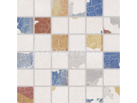 Rektifikované. Mozaikavo farebnom prevedení viacfarebná v betónovom dizajne o rozmere 29,8x29,8 cm a hrúbke 10 mm s matným povrchom. Vhodné iba do interiéru. S veľkými a náhodnými odchýlkami v odtieni farieb, štruktúre povrchu a kresbe.