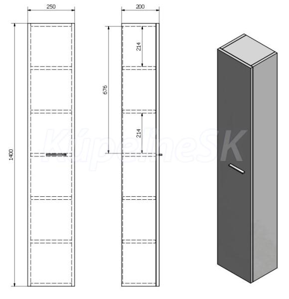 Závesná vysoká skrinka 1x dvere 5x drevená polica otočením o ,180 ° získate pravú alebo ľavú variantu Závesná vysoká skrinka 1x dvere 5x drevená polica otočením o ,180 ° získate pravú alebo ľavú variantu