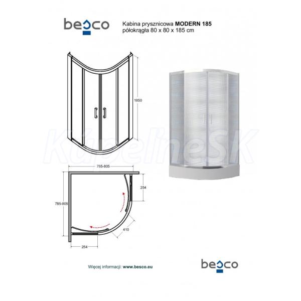 Besco MODERN 185 Štvrťkruh sprchový kút 80x80x185cm Univerzálny, rám Chróm Al, sk.Fume 6mm