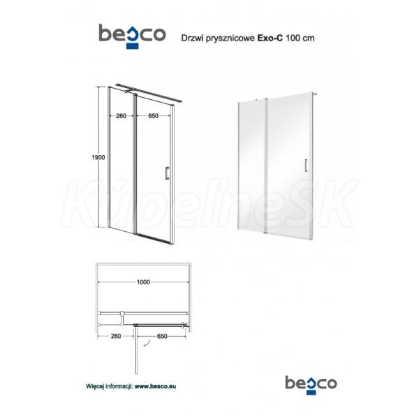 Besco EXO-C Sprchový kút 100x80x190cm, Univerz. rám Chróm Al, sk.číre 6mm