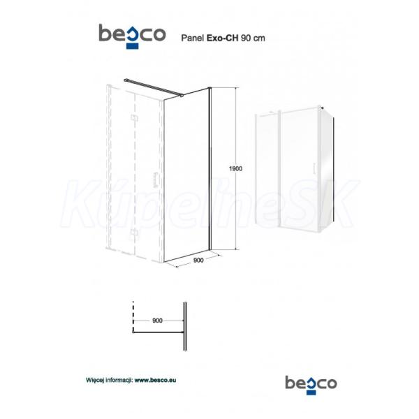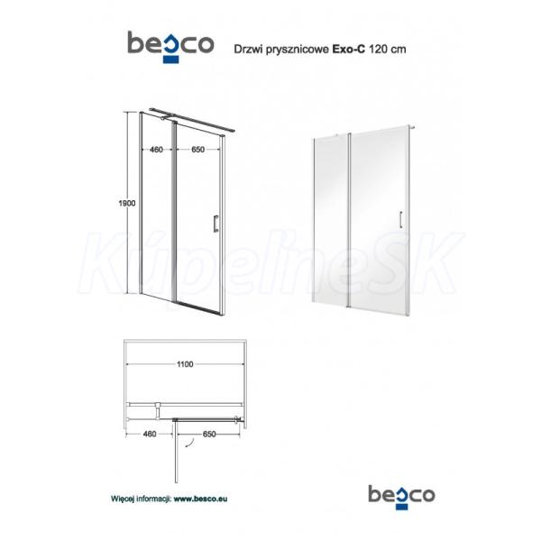 Besco EXO-C Sprchový kút 120x90x190cm, Univerz. rám Chróm Al, sk.číre 6mm