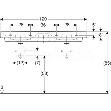 Dvojumývadlo Geberit Smyle Square: 120x48cm, Otvor pre batériu=V strede, Prepad=Viditeľné, Biela
