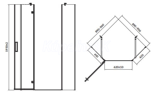 Cersanit JOTA Sprchový kút 5-uhoľníkový 90x90x195cm, Chróm, Číre sklo, Ľavý S160-014