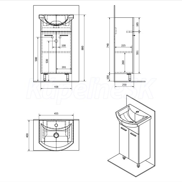 text-align: justify, Umývadlo nie je súčasťou skrinky.