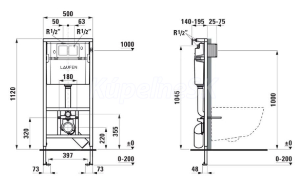 Laufen LIS-Predstenová inštalácia duofix pre závesné WC, horný a zadný prívod vody,112 cm