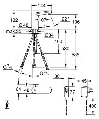 >>  Batérie vodovodné  >>  GROHE  >>  Eurosmart Cosmopolitan  >>  GROHE Eurosmart Cosmopolitan E umývadlová batéria pre ohrievač vody,chróm 36324001