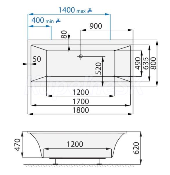 Santech COMFORT VARIA obdĺžniková masážna vaňa 180x80 cm
