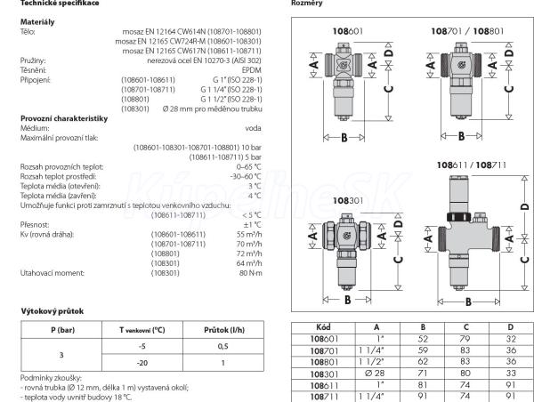 Nezámrzný ventil série 108 umožňuje vypuštění média v okruhu, když