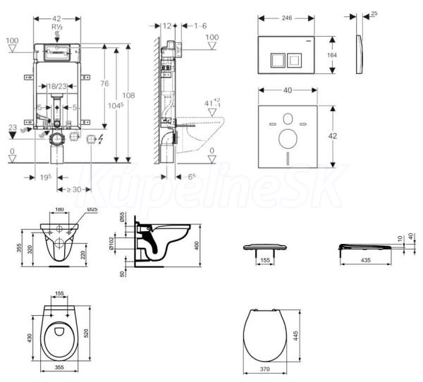 Geberit SET kombifix 110.100.00.1+záv.WC Quarzo/Alpha so sedát,tlač. DELTA 50 lesklý Chróm