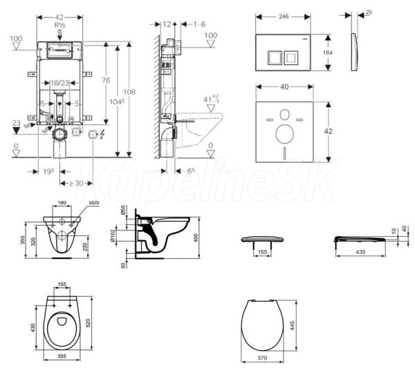 Geberit SET kombifix 110.100.00.1+záv.WC Quarzo/Alpha so sedát,tlač. DELTA 50 matný Chróm