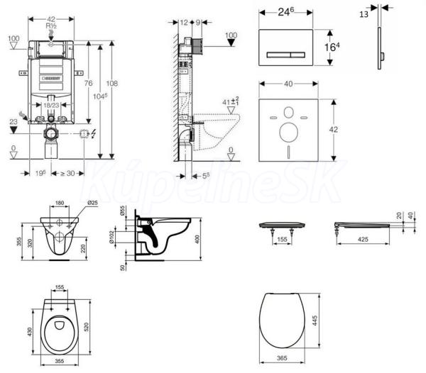 - predstenový inštalačný prvok Geberit Kombifix, so splachovacou nádržkou pod omietku