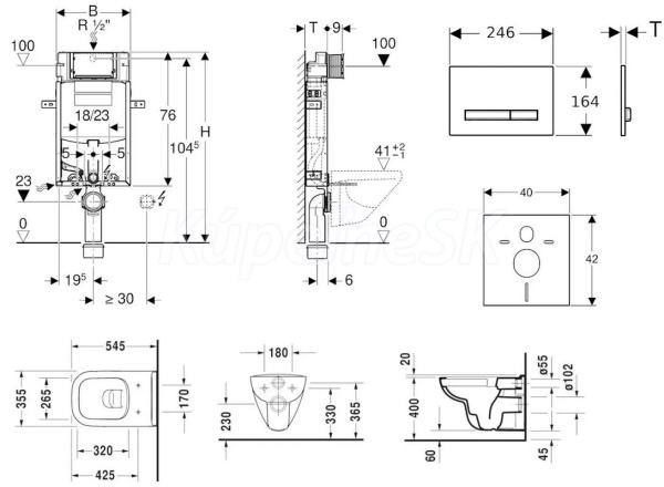 - predstenový inštalačný modul Geberit Kombifix (110.302.00.5), so splachovacou nádržkou pod omietku Sigma 12 cm