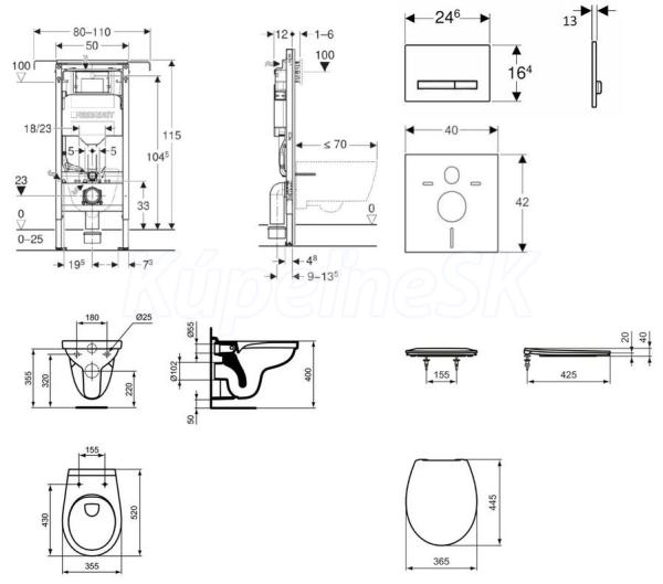 Geberit Set Jadrofix (Duofix Special) 111.355.00.5+závesné WC Quarzo/Alpha+sedátko SoftClose+tlačidlo Sigma 50 alpská Biela