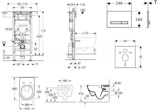 Geberit Set Jadrofix 111.355.00.5+záv.WC V&B Subway 2.0+sed.SC+tlač.Sigma50 alpská Biela