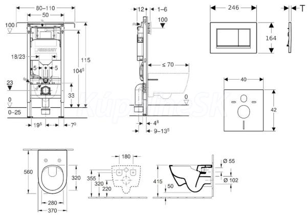 - predstenový inštalačný modul Geberit Duofix (111.355.00.5), sa splachovacou nádržkou pod omietku Sigma 12 cm