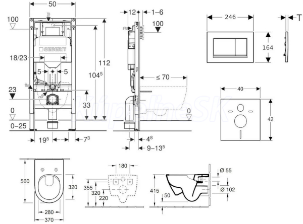 - predstenový inštalačný modul Geberit Duofix (111.300.00.6), sa splachovacou nádržkou pod omietku Sigma 12 cm