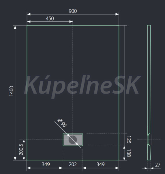 Aquatek SMC ROCK Rohová sprchová vanička tvrdený polymér 140x90, nízka samon+sif+krytka