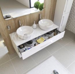 - farba : biela lesklá /viditeľné časti - čelo zásuvky,bočné steny a horná doska skrinky/