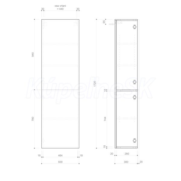 Sapho ESPACE skrinka 50x172x32cm, 2x dvierka, ľavá/pravá, dub Alabama