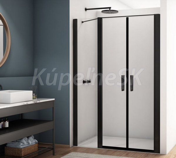 Ronal DIVERA 2-krídlové dvere s pevnou stenou 170x200cm nika/kút 1 vzpera Číre/Čierna
