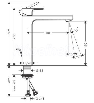 Hansgrohe Vernis Shape 190 umývadlová batéria s výpusťou a tiahlom Čierna matná