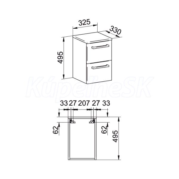 Zákazková výroba, Bino, kúpeľňová skrinka, spodná 325x495x330 mm, závesná, 2 zásuvky, Multidecor, Šedý kameň