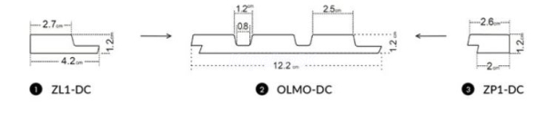 Kolekcia OLMO pozostáva z lamiel so šírkou 3 cm, rozdelených úzkym spojom s rozmerom 0,8 cm.