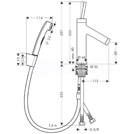 * Bidet sprchový kút vr. Porter, Isiflex sprchovou hadicou 1,60 m (no.32128000)