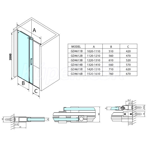 >> Sprchové kúty a žľaby >> Sprchové dvere do niky >> Gelco DRAGON BLACK sprchové dvere do niky/rohového kútu 1500mm, číre sklo