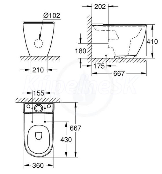 Nový rad sanitárnej keramiky GROHE Essence Ceramics sa postará o to, že sa vaša novo renovovaná kúpeľňa stane skutočnou oázou plnou subtílnych tvarov a elegantných siluet. Toto stojacie WC GROHE Essence Ceramic je určené na montáž k stene s podomietkovou splachovacou nádržou. Disponuje ekologickým duálnym splachovaním s objemom 3/4,5 litra a univerzálnym sifónom na pripojenie vodorovného aj zvislého odpadového kolena. Keramický povrch v nádhernej farbe Alpine White bol vylepšený technologicky pokročilou glazúrou GROHE PureGuard, ktorá zaručuje maximálnu hygienu a jednoduchú údržbu. Odpudzuje totiž vodný kameň, zatiaľ čo antibakteriálne ióny potláčajú rast baktérií. Misa bez okrajového splachovacieho kruhu navyše zabraňuje usadzovaniu baktérií a nečistôt. Rad GROHE Essence Ceramic bol navrhnutý pre dokonalú kombináciu so splachovacími tlačidlami GROHE Arena Cosmopolitan a inštalačnými rámami GROHE Rapid SL, a pre jednoduché dosiahnutie dokonale zjednotenej estetickej aj výkonnostnej úrovne vašej kúpeľne. Voľbou sanitárnej keramiky GROHE môžete ťažiť z know-how svetového experta na vodovodné batérie, spoločnosti GROHE, a z viac než storočnej skúsenosti a technologickej expertízy japonského výrobcu LIXIL, lídra na poli povrchových technológií. GROHE Essence Ceramic – krása vo svojej najčistejšej podobe. Ideálny v kombinácii s nasledujúcimi WC doskami GROHE Essence Ceramic – 39577000 (s plynulým sklápaním SoftClose) a 39576000 (bez plynulého sklápania SoftClose).