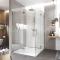 Hliníkové profily vo farbe chróm, sklo Číre, hrúbka skla 6/6 mm, štvorec, rozmer 800x800 mm, výška 2000 mm, vstup rohom.
