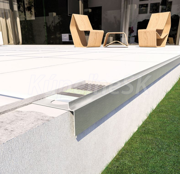 Celox Hliníkový Odkvapový/Balkónový profil PRIAMY ukončovací pre dlažbu, Al-prírodný